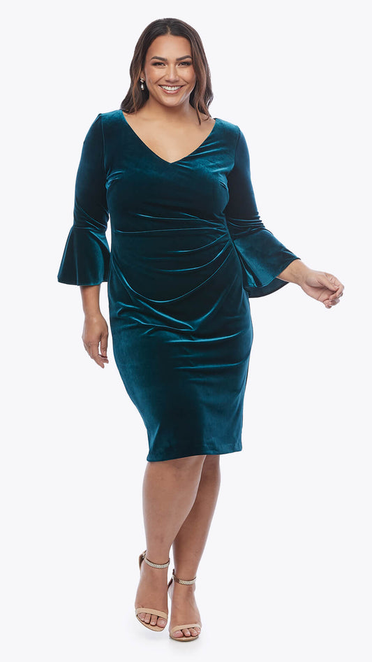 Layla Jones - Short Stretch Velvet Dress LJ0588 Emerald