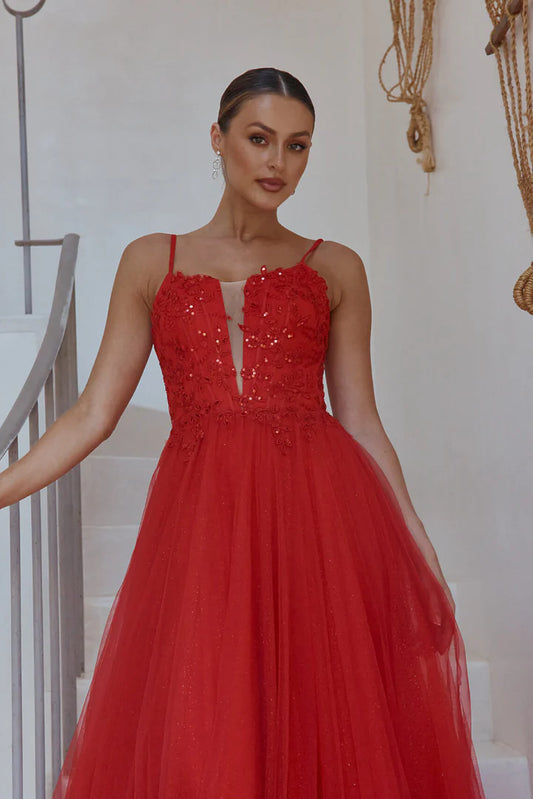 Zaliea Long Stretch Scuba Dress - Fire Z0232