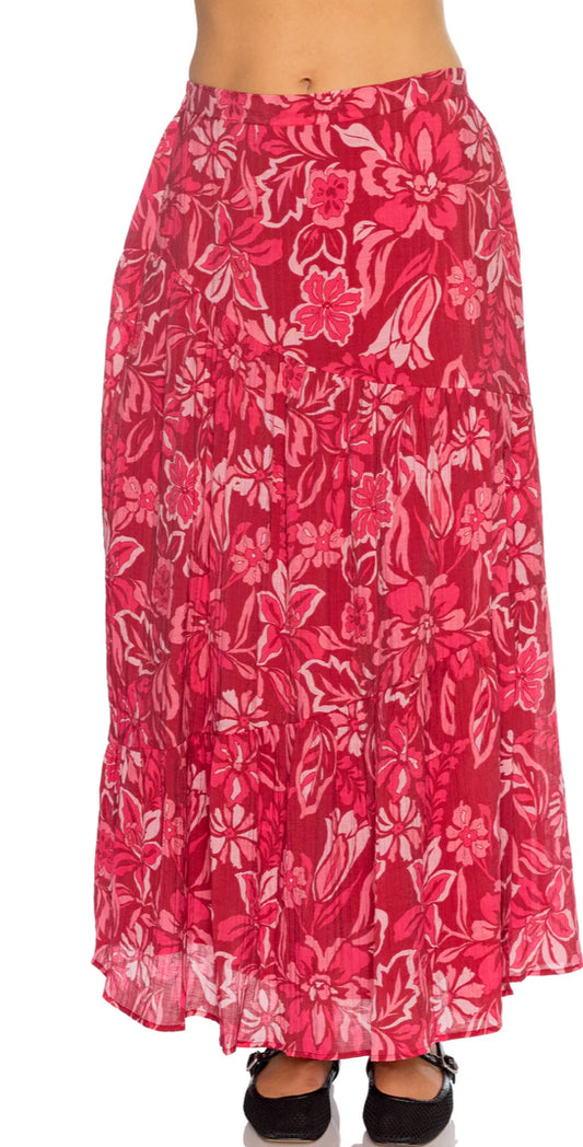 Minkpink Plum-Floral Mae Tiered Midi Skirt