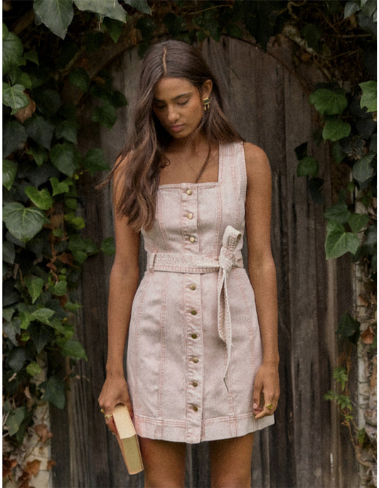 Minkpink Dahlia Denim Panel Mini Dress - Light Pink MG2501661