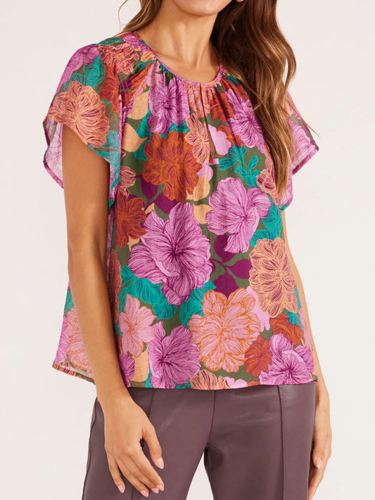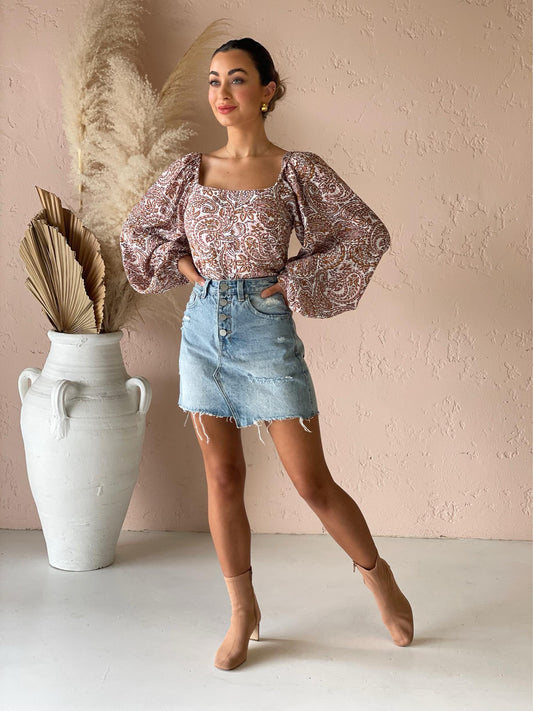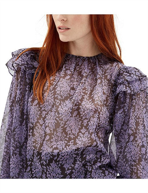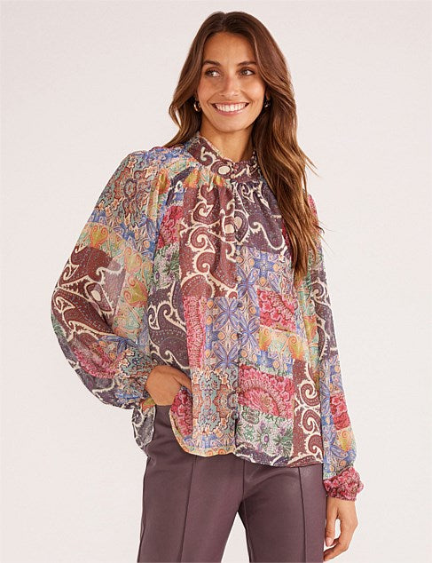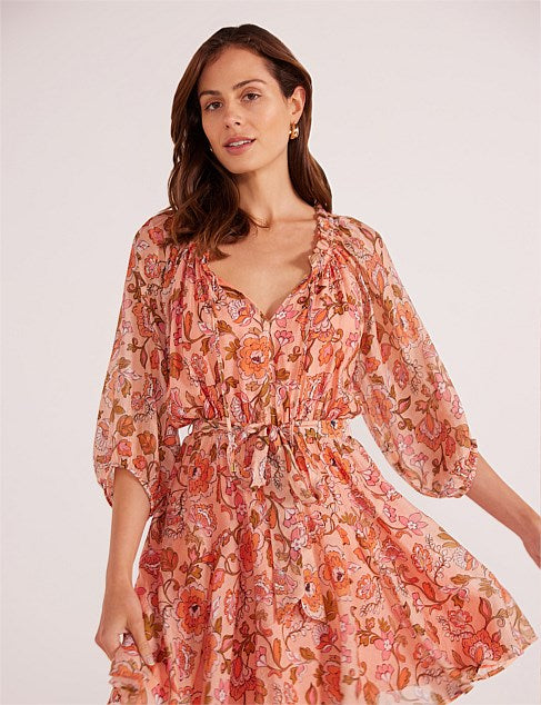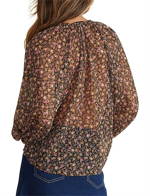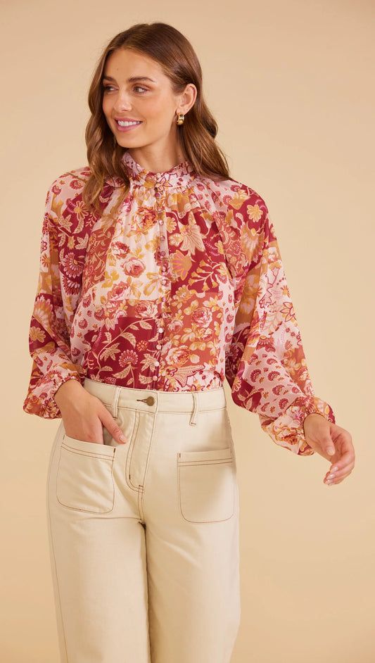 Amelia Long Sleeve Blouse - Peach Floral from MINKPINK