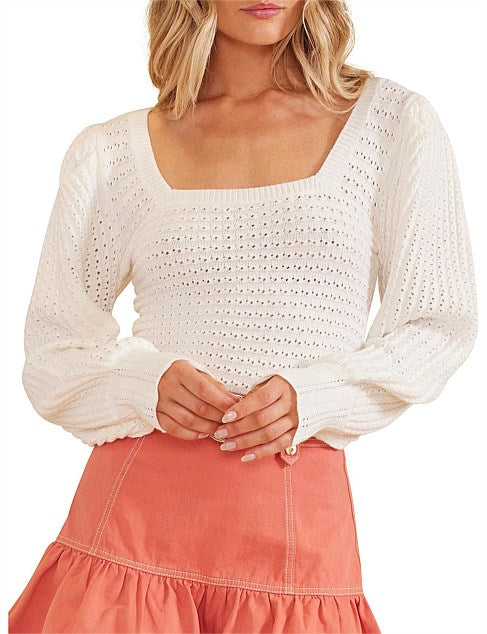 Minkpink Brooke Crochet Wave Sweater MG2502882 Cream
